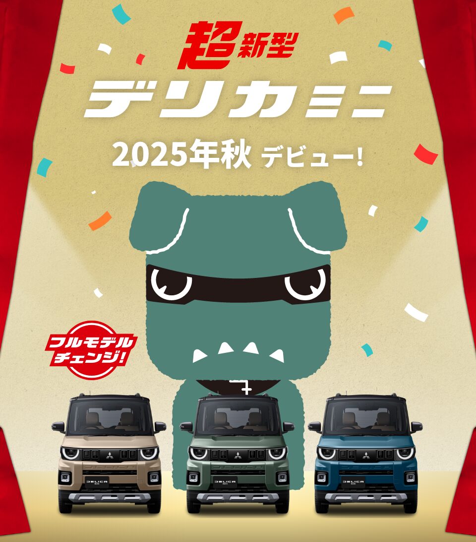 新型デリカミニ ティザーサイト公開中!カッコかわいい頼れる相棒、「デリカミニ」が2025年、秋にさらなる進化を遂げ、ニューモデルとして生まれ変わる!