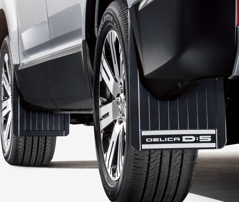 デリカD:5には、純正オプションとして、品質やフィット感に優れた専用マッドガードが用意されています。