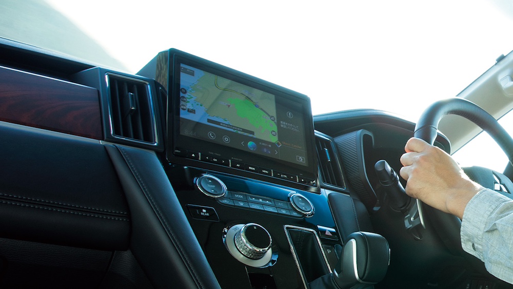 大画面のビルトイン型で、基本的なフルセグテレビやカーナビゲーション機能だけでなく、Wi-FiやBluetoothに対応しているため、スマートフォンと連携させることでさらに便利になります。