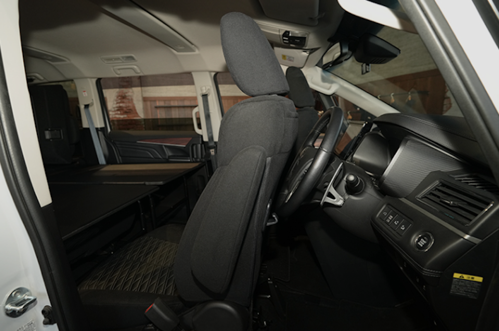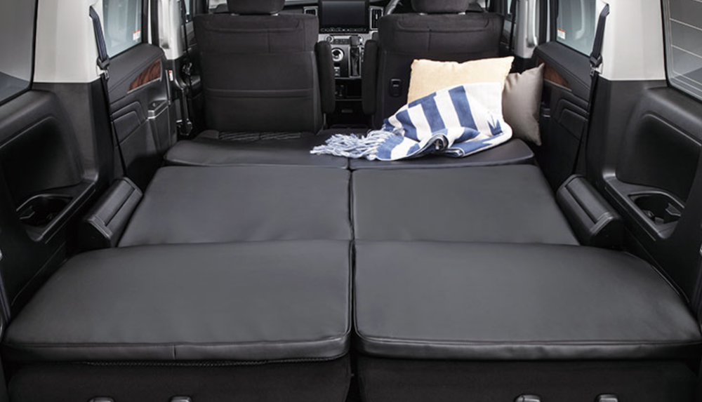 また、フロントシートとセカンドシートを使ったベッドも展開できるようになります。サードシートは跳ね上げて広い収納スペースを確保できるため、車内を広々と使える便利な装備と言えます。