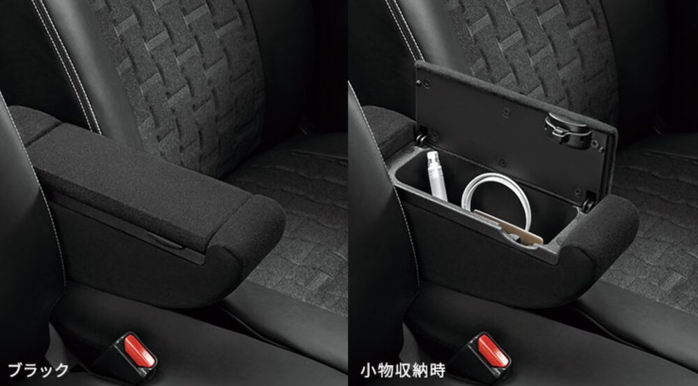 純正品のアームレストコンソールはシートとの一体感も抜群で、後付けのように見えない自然な仕上がりです。